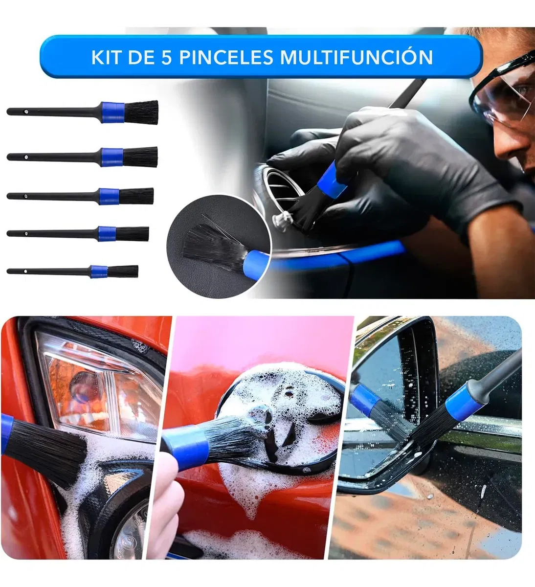 Ideal para limpieza interior y exterior. Aptos para contacto con desengrasantes y limpiadores sin rayar. En bolsa. La limpieza de tu auto nunca ha sido tan efectiva y accesible. Las brochas detailing de Laffite están diseñadas para alcanzar cada rincón y detalle de tu vehículo, garantizando una limpieza minuciosa y de calidad. Fabricadas con los mejores materiales, estas brochas son ideales para todo tipo de superficies, desde paneles de control hasta llantas y asientos. Este conjunto de brochas es perfecto tanto para entusiastas del detailing como para aquellos que buscan mantener su auto en óptimas condiciones. Su diseño ergonómico asegura un manejo cómodo y eficiente, permitiendo que cada tarea de limpieza se realice sin esfuerzo. Además, su uso es ligero y práctico, lo que facilita mantener tu auto siempre impecable.