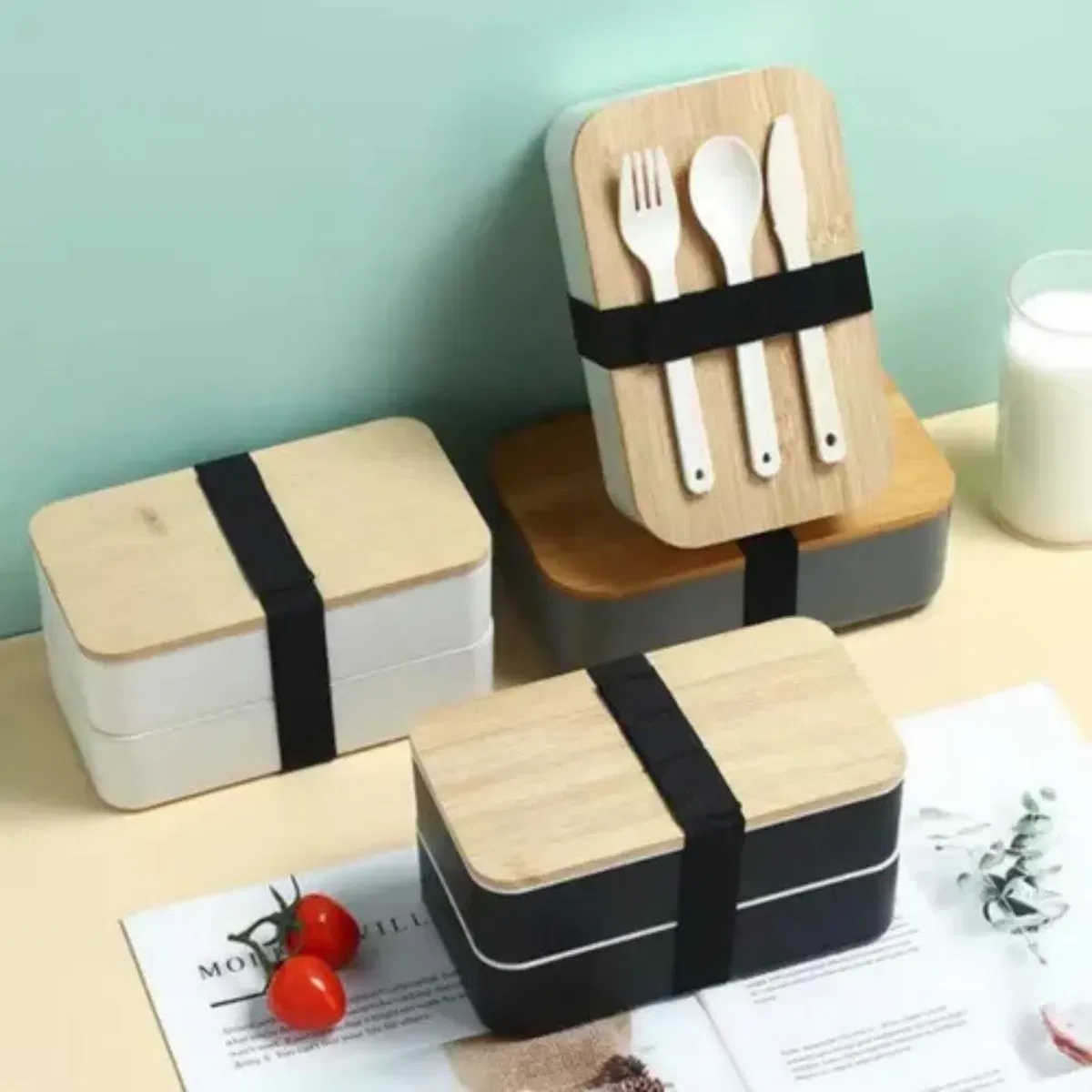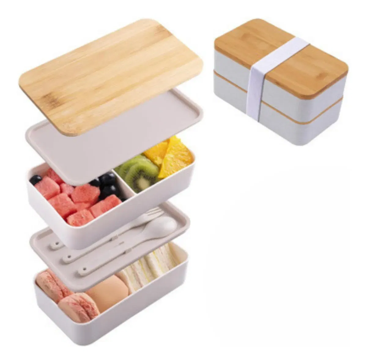 LUNCHERA DOBLE PISO PLASTICO/ TAPA MADERA