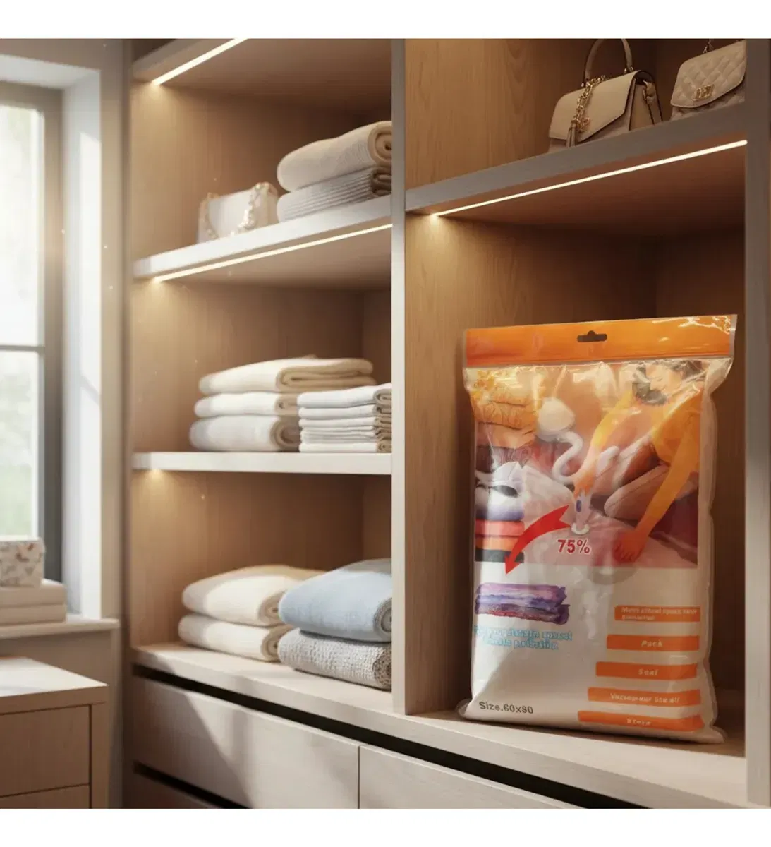 Descubre una manera eficiente de organizar tu ropa con la bolsa de Vacío Guarda Ropa. Estas bolsas, de dimensiones 60x80 cm, son ideales para maximizar el espacio en tu armario y mantener tus prendas protegidas del polvo y la humedad.