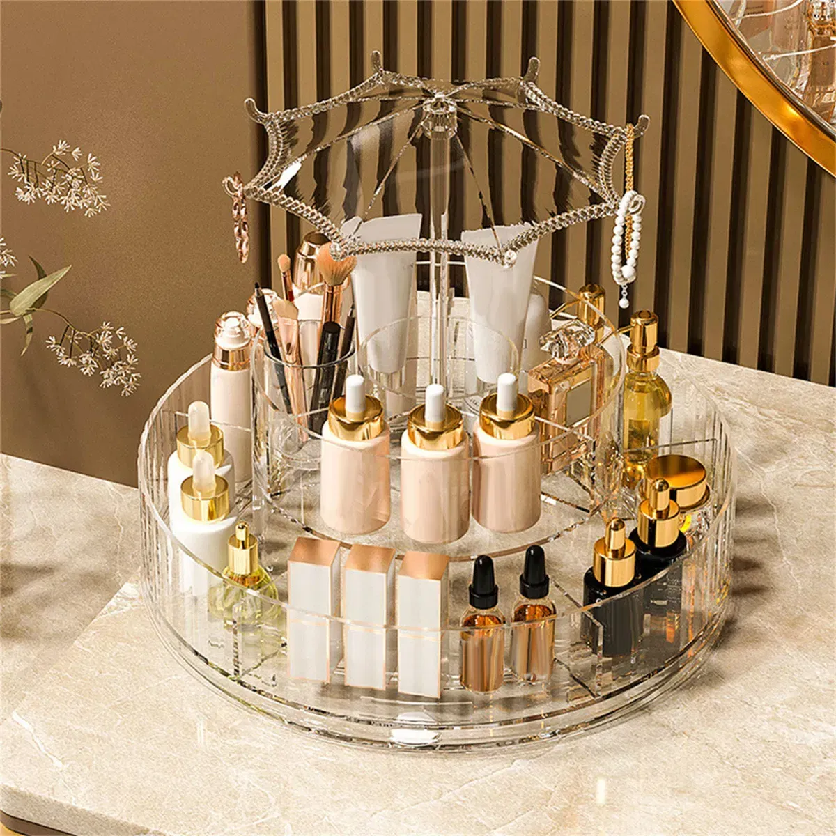 -DISEÑO LIGERO: este organizador de cosméticos de escritorio giratorio combina moda y luz con una apariencia delicada, añadiendo sabor a tu tocador.