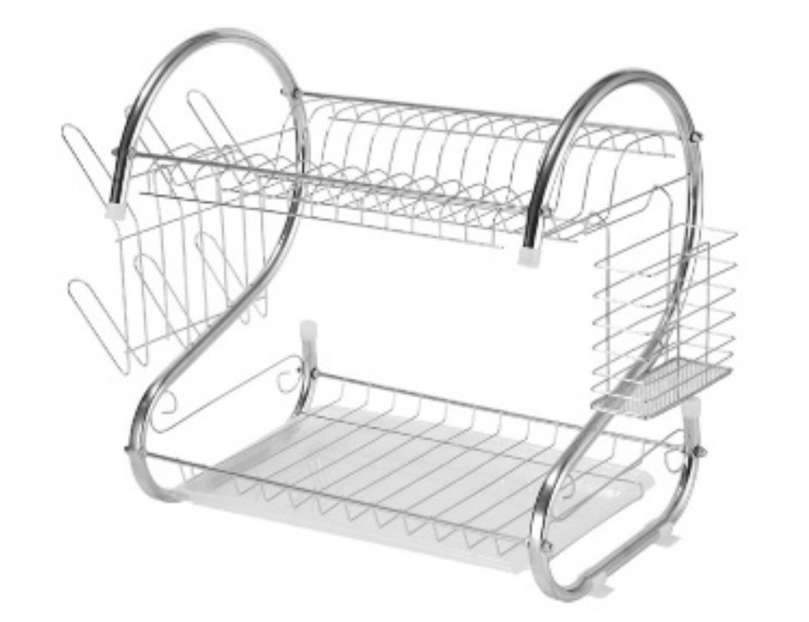 Escurridor doblePorta copas y porta utensiliosMedidas: alto 38cm, ancho 35cm, prof. 24cmMaterial: Acero inoxidable